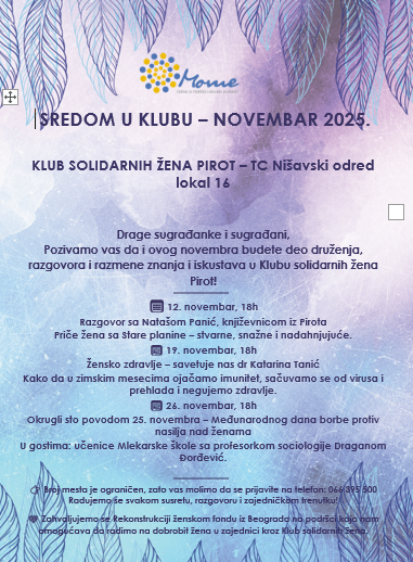 Centar za podršku lokalnoj zajednici „Mome“ je organizacija civilnog društva osnovana sa ciljem da unapredi položaj žena i doprinese razvoju lokalnih zajednica na području jugoistočne Srbije. Naš rad utemeljen je na vrednostima solidarnosti, rodne ravnopravnosti, participacije i društvene pravde.